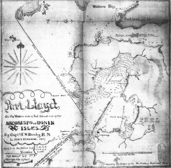 • Port Lloyd on the Western side of Peel Island one of the Arzobispo of Bonin Isles. (Captain F. W. Beechy, 1827)